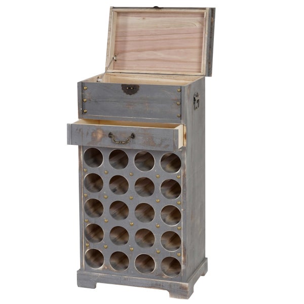 BERLINLODGE Weinregal mit Schublade und Truhe Flaschenregal für 20 Flaschen HxBxT 94x48x31cm Shabby-Look, Vintage Grau