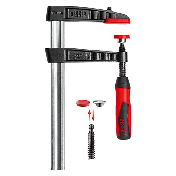 Spürbar mehr Komfort - mit Bessey Best-Comfort-System Hochwertiger 2-Komponenten-Kunststoffgriff Werkzeuglos wechselbare Druckplatten (ab 80 mm Ausladung) Mit Schutzkappen auf den Spannflächen Stabile Hohlprofilschiene mit Riffelung BESSEY Rutschsicherung (ab 80 mm Ausladung)