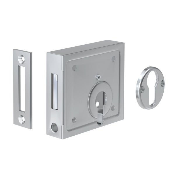 - Aufschraubschloss mit Schließblech und Schlüsselschild (Rosette)