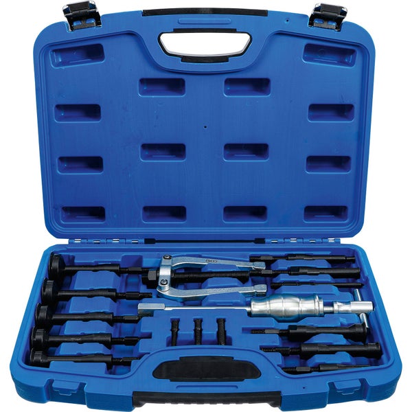 zur Demontage von Lagern, verbaut in einem Sackloch findet Verwendung bei der Reparatur von z. B. Getrieben Lieferumfang: Gleithammer, Gewicht: 900 g, Länge: 290 mm 2-Arm-Abzieher mit Spindel, 125 mm 1 Spreizkralle 5 - 10 mm 1 Spreizkralle 8 - 12 mm 1 Spreizkralle 13 - 18 mm 1 Spreizkralle 23 - 29 mm 1 Spreizkralle 27 - 31 mm 1 Spreizkralle 32 - 35 mm 1 Spreizkralle 36 - 42 mm 1 Spreizkralle 42 - 46 mm 1 Spreizkralle 47 - 52 mm Merkmale Verpackung für Wandbehang geeignet: NeinBruttogewicht: 5366 g