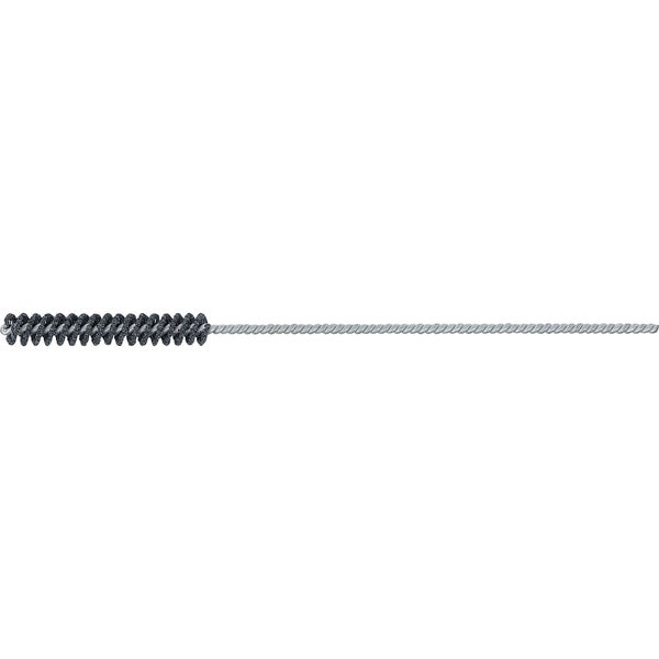 zur Verwendung im Automobilbau, Luft- und Raumfahrt, Hydraulik und im Sanitär-und Heizungsbau zur Bearbeitung der Zylinderlaufbahnen vor der Montage neuer Kolbenringe selbstzentrierende Innenbürste mit Besatz aus flexiblen Siliziumcarbidkugeln zum Kantenbrechen, Endbearbeitung von Oberflächen und Honarbeiten erzeugt gleichmäßig feingeschliffene Oberflächen mit hohem Traganteil durch das Honen wird der Zylinderdurchmesser nicht vergrößert ausschließlich die Oberfläche wieder neu strukturiert die Honspuren sorgen für die nötige Ölhaftung zu verwenden mit Handbohrmaschinen und Standmaschinen die Verwendung von Schleiföl wird empfohlen! Merkmale Drehzahl max.: 300 U/min Gesamtlänge: 200 mm Schaftdurchmesser: 3,2 mm Besatzlänge: 2 mm Bürstenlänge: 64 mm