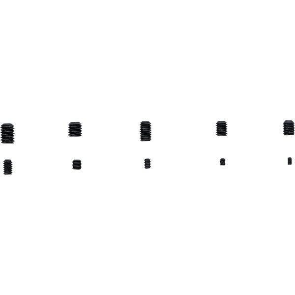 Madenschrauben mit Regelgewinde: 15 St. 5/32 UNC 32 x 3/16 20 St. 5/16 UNC 18 x 3/8 10 St. 3/8 UNC 16 x 3/8 10 St. 5/16 UNC 18 x 1/2 15 St. 1/8 UNC 40 x 3/16 10 St. 3/16 UNC 24 x 1/4 15 St. 1/4 UNC 28 x 1/4 20 St. 1/4 UNC 20 x 1/4 10 St. 3/8 UNC 16 x 1/2 10 St. 1/4 UNC 20 x 3/8 Madenschrauben mit Feingewinde: 10 St. 5/16 UNF 24 x 3/8 15 St. 5/16 UNF 24 x 3/8 Merkmale Bruttogewicht: 330 gDIN: 913 Material: StahlVerpackung für Wandbehang geeignet: Ja