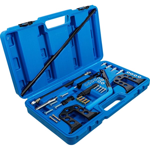 dient dem Herunterdrücken der Ventilfedern ermöglicht Wechsel der Ventilschaftdichtungen ohne Demontage des Zylinderkopfes mit Druckschlauch zur Pressluft-Befüllung des Zylinders passend für M14 und M18 Zündkerzengewinde inkl. Ventilkeil-Montagewerkzeug max. Breite 515 mm Merkmale Bruttogewicht: 3900 g