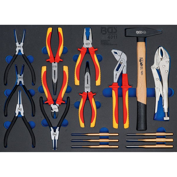 BGS Werkstattwageneinlage 3/3: Zangen-, Splintentreiber-Satz, Hammer 17tlg. - 4011