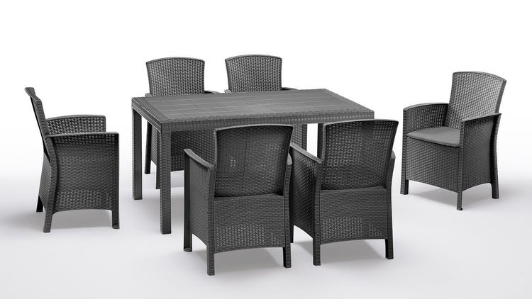 BICA Lido Wetterfestes Balkonset 7-tlg. mit 6 Sessel inkl. Sitzkissen und Tisch Houston Graphit