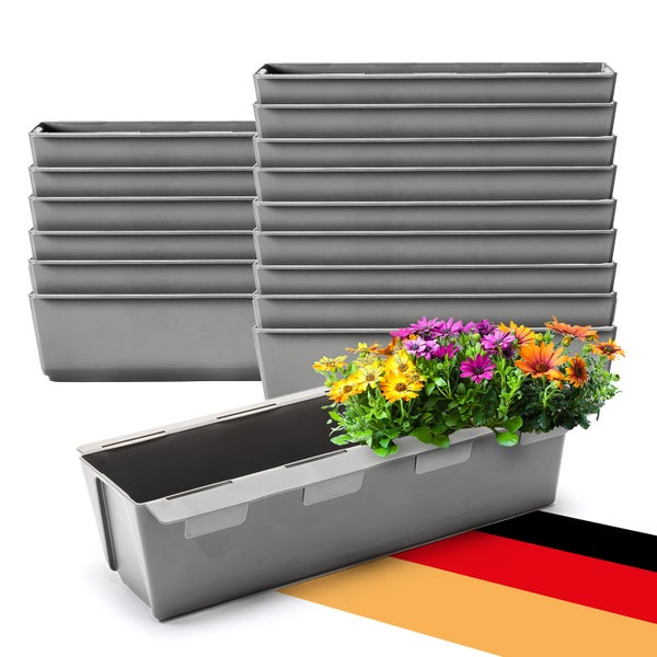 BigDean 16er Set Paletten Blumenkästen - Einsatz - mit Hängesystem zum Einhängen - 37cm beton-grau - Pflanzkasten für Europalette Balkonkasten Blumentopf - aus recyceltem PP-Kunststoff