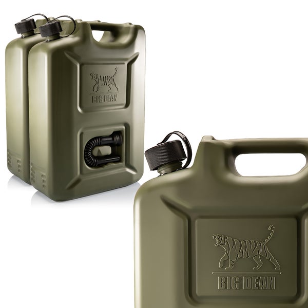BigDean 2 Stück Benzinkanister 20L in Olivgrün mit flexiblem Ausgießer - Kraftstoffkanister für Benzin & Diesel - Kanister Dieselkanister Reservekanister - Made in Germany