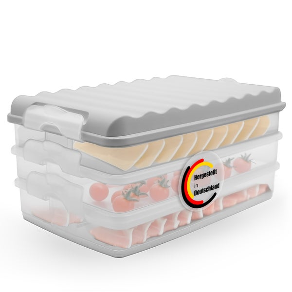 Die robusten Kühlschrank-Aufbewahrungsboxen sorgen dafür, dass Ihre Lebensmittel länger frisch bleiben. Als praktisches Kühlschrankzubehör und Organizer sind die Wurstdosen und Käsedosen perfekt für jede Küche. Made in Germany – Qualität, auf die Sie sich verlassen können.