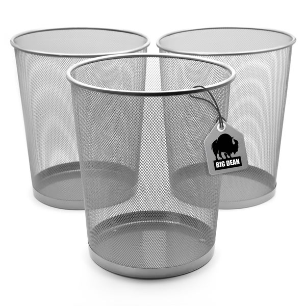 BigDean 3 Stück Papierkorb Mülleimer Büro silber 20L Draht – vielseitiger Mülleimer