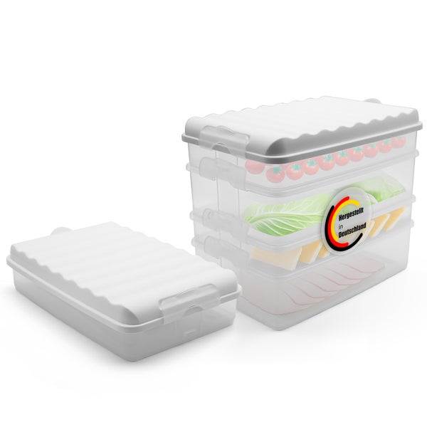 Die robusten Kühlschrank-Aufbewahrungsboxen sorgen dafür, dass Ihre Lebensmittel länger frisch bleiben. Als praktisches Kühlschrankzubehör und Organizer sind die Wurstdosen und Käsedosen perfekt für jede Küche. Made in Germany – Qualität, auf die Sie sich verlassen können.