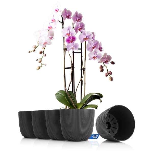 DETAILS: Topf Durchmesser außen: ca. 15 cm // Topf Höhe: ca. 13 cm // Farbe: Anthrazit // Material: PP-Kunststoff in hoher Qualität // Lieferumfang: 5x Pflanztopf // Detailmaße finden Sie auf den Fotos!