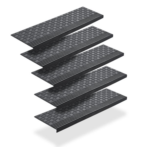 BigDean 5er Set Stufenmatten aus Gummi - 65x25cm - Treppenstufen Matten für Außen Outdoor - Antirutschmatten Treppe Anti-Rutsch Gummimatten