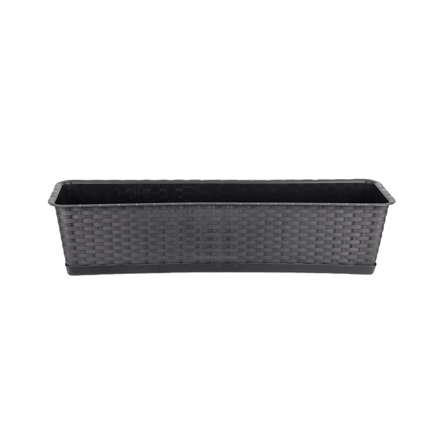 BigDean Blumenkasten mit Untersetzer 80 cm lang Rattan-Optik anthrazit - aus PP-Kunststoff - Balkon Pflanzkasten schmal Balkonkasten