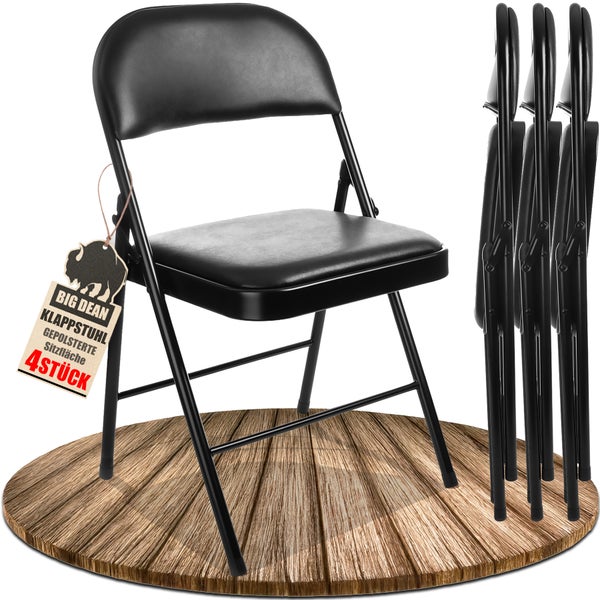 BigDean Klappstuhl 4 Stück gepolstert Klappstühle schwarz Metall Stuhl mit Kunstlederbezug robust bis 130 kg belastbar