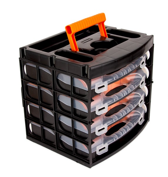 BigDean Sortierkasten Werkzeugkoffer mit 4 herausnehmbaren Schubladen - Sortierkästen Sortierkoffer – Sortimentskasten Schraubenbox - Organizer für Kleinteile -