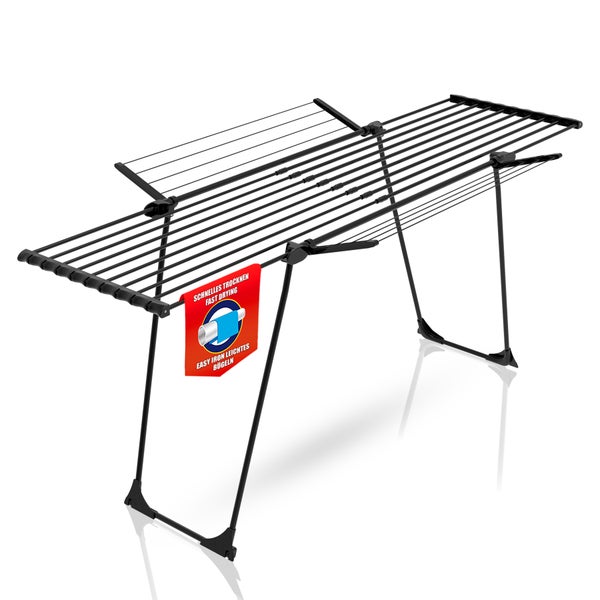 BigDean Wäscheständer Jumbo Schwarz zusammenklappbar 28m Trockenlänge – Wäschetrockner ausziehbar ideal für Familien