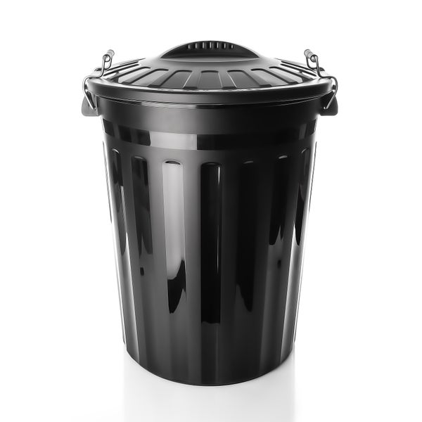 BigDean 1 Stück wetterfeste Universaltonne Schwarz mit Deckel und 2 Tragegriffen + Clip Verschluss – Mülltonne – Regentonne – Futtertonne für Indoor + Outdoor geeignet - Made in Europe