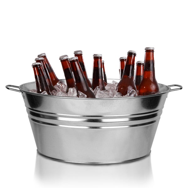 BigDean XXL Getränkewanne Getränkekühler mit Henkel 56x48,5x21,5cm rund Zinkwanne wasserdicht Großer Champagner- & Sektkühler, Flaschenkühler, Kühlwanne, Eiskübel, Eiseimer für Garten-Party