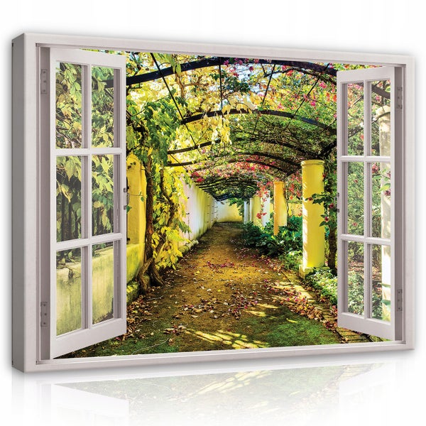 Bilder Fenster Garten Modern Leinwandbild Wohnzimmer 120X80 cm