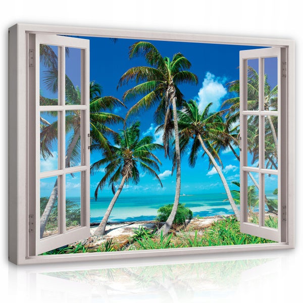 Bilder Fenster Strand Palmen Leinwandbild Wohnzimmer 80X60 cm