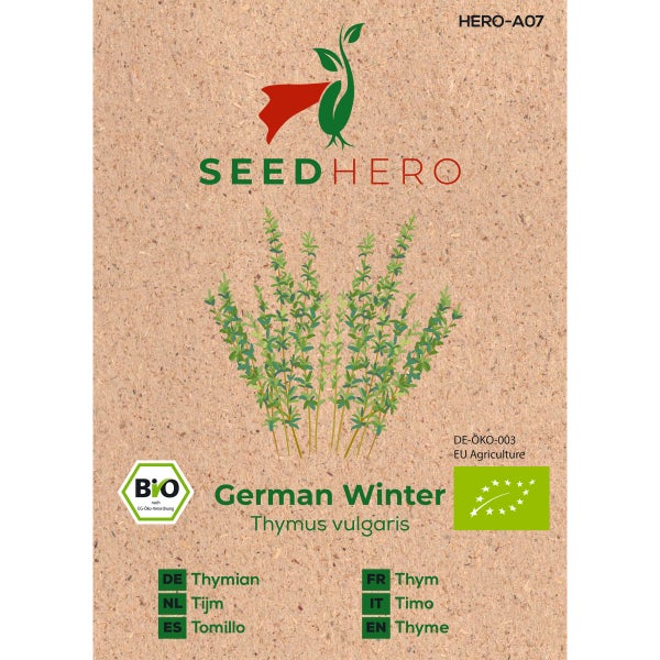 Thymian German Winter ist ein robustes, winterhartes Würzkraut mit intensivem Aroma. Ideal für mediterrane Gerichte, Tees und als Heilpflanze. Pflegeleicht und mehrjährig.