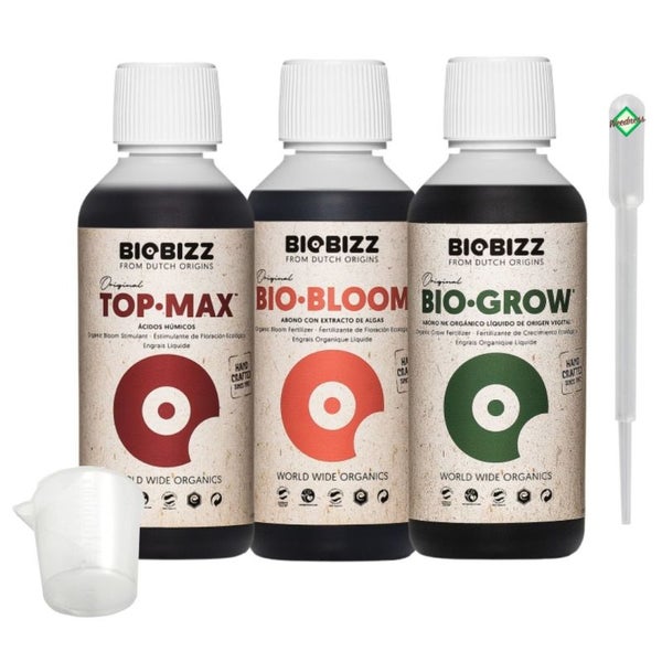 - ArtikelbeschreibungDas BioBizz Dünger Set ist die perfekte Wahl für alle, die ihre Pflanzen optimal versorgen möchten – egal, ob drinnen oder draußen. Mit Bio-Bloom, Bio-Grow und Top Max bietet dieses Set alles, was Ihre Pflanzen in der Wuchs- und Blütephase benötigen. Die mitgelieferte Pipette und der 70-ml-Messbecher machen die Dosierung kinderleicht. Egal, ob Sie Orchideen, Bonsai oder Tomaten züchten, dieses Set unterstützt das Wachstum Ihrer Pflanzen auf organische Weise.