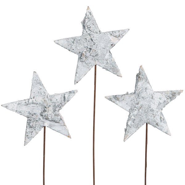 Birkensterne am Draht, Weiß 6cm, 24 St - Weihnachtliche Deko, Natürliche Eleganz, 24 Stück