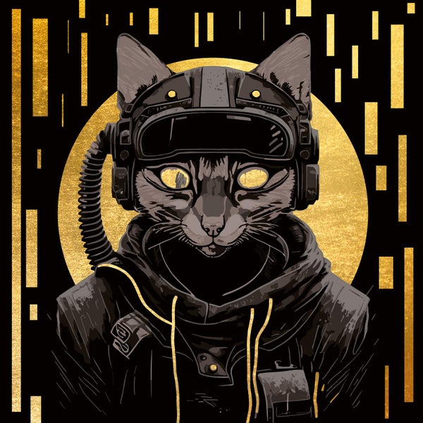 Unser exklusives Acrylglasbild mit Blattgoldveredelung zeigt einen Cartoon-Captain mit goldenem Helm und verspielter Katze. Die Kombination aus Blattgold und Tiermotiv verleiht dem handgefertigten Kunstwerk eine einzigartige Ausstrahlung. Brillant und edel.
