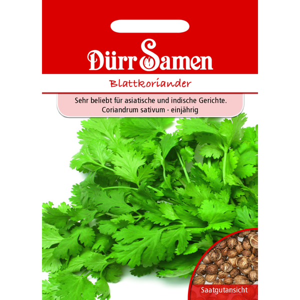 Info: Blattkoriander ist beliebt für asiatische und indische Gerichte. Sehr blattreich mit vielen zarten Blättern.