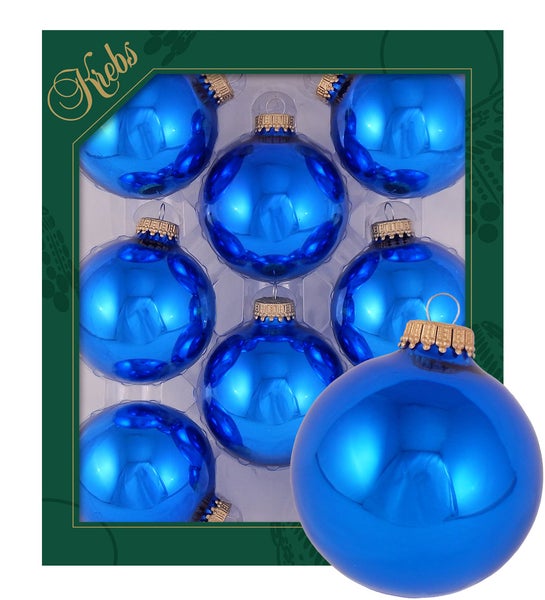 Blau glänzend 7cm Glaskugeln uni, 8 Stck., Weihnachtsbaumkugeln, Christbaumschmuck, Weihnachtsbaumanhänger