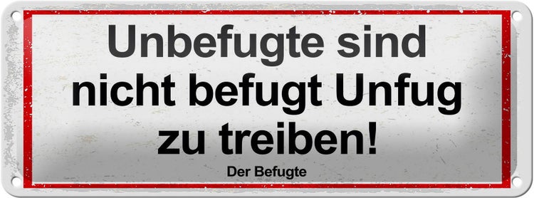 - TitelBlechschild 10x27cm Spruch Unbefugte sind nicht befugt Unfug zu treiben! [ORIGINAL BLECHSCHILD von FEMER]