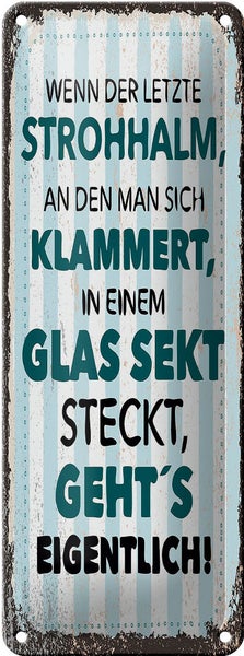Blechschild 10x27cm Spruch Wenn der letzte Strohhalm in einem Glas Sekt steckt