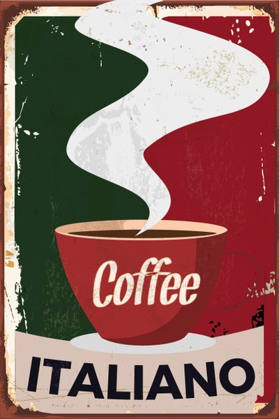 Blechschild | Italien | Kaffee | Espresso | Bar | Stahlschild mit lustigen Sprüchen | Innen und Außen einsetzbar | Deko | STA2452, Format: 20x30cm