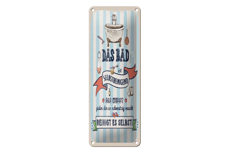 - TitelBlechschild Spruch 10x27 cm Das Bad ist selbstreinigend Reinigt es selbst [ORIGINAL BLECHSCHILD von FEMER]
