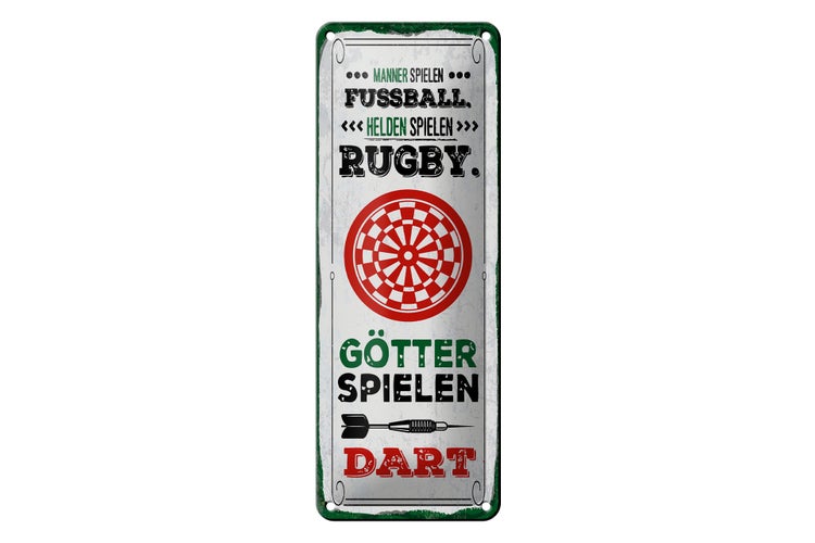 Blechschild Spruch 10x27 cm Männer Fußball Helden Rugby Götter Dart Dekoration