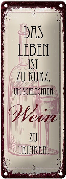 - TitelBlechschild Spruch 10x27cm das Leben ist zu kurz für schlechten Wein [ORIGINAL BLECHSCHILD von FEMER]