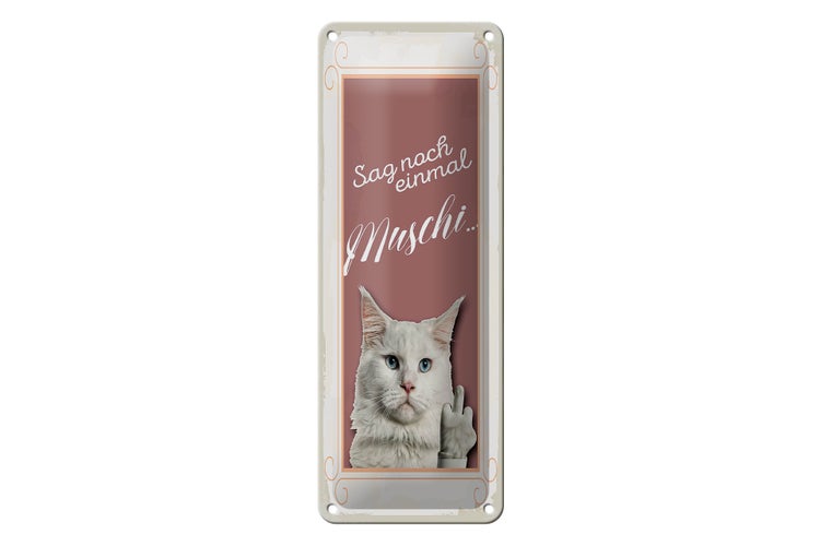- TitelBlechschild Spruch 10x27cm Katze sag noch einmal Muschi Dekoration [ORIGINAL BLECHSCHILD von FEMER]