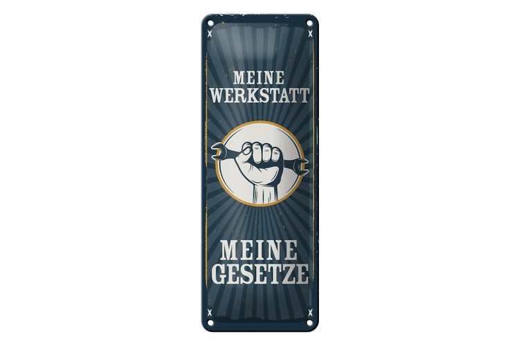 - TitelBlechschild Spruch 10x27cm Retro meine Werkstatt meine Gesetze [ORIGINAL BLECHSCHILD von FEMER]
