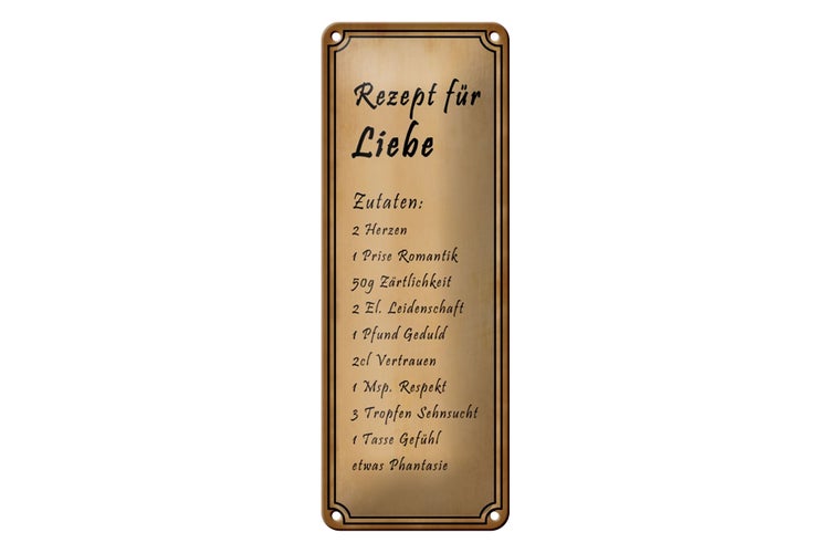 - TitelBlechschild Spruch 10x27cm Rezept für Liebe Tüte 2 Herzen Dekoration [ORIGINAL BLECHSCHILD von FEMER]