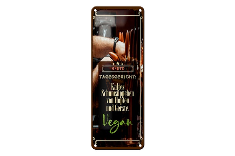 Blechschild Spruch 10x27cm Tagesgericht Hopfen und Gerste Dekoration