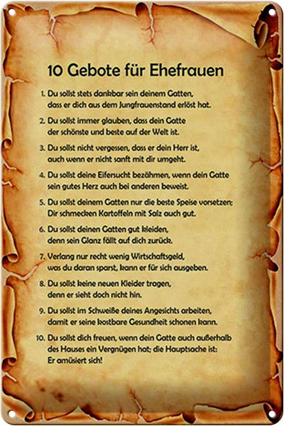 - TitelBlechschild Spruch 20x30cm 10 Gebote für Ehefrauen [ORIGINAL BLECHSCHILD von FEMER]