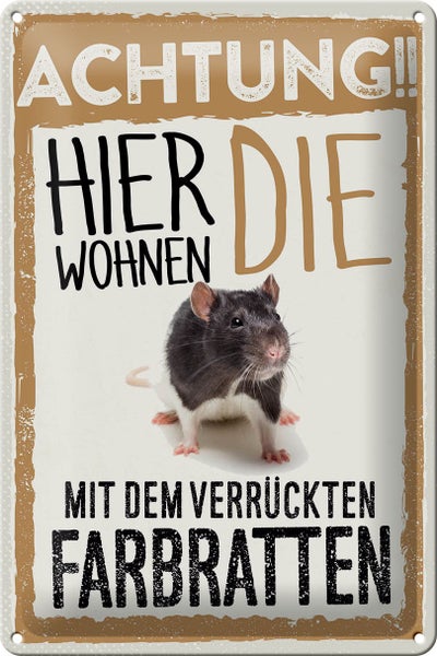 - TitelBlechschild Spruch 20x30cm Achtung hier Farbratten [ORIGINAL BLECHSCHILD von FEMER]