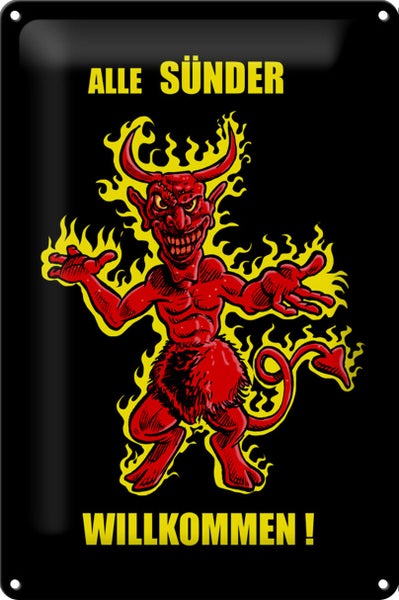 - TitelBlechschild Spruch 20x30cm Alle Sünder willkommen (Teufel) [ORIGINAL BLECHSCHILD von FEMER]