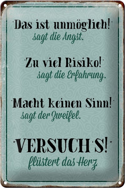 - TitelBlechschild Spruch 20x30cm Angst Erfahrung Zweifel Herz blau [ORIGINAL BLECHSCHILD von FEMER]