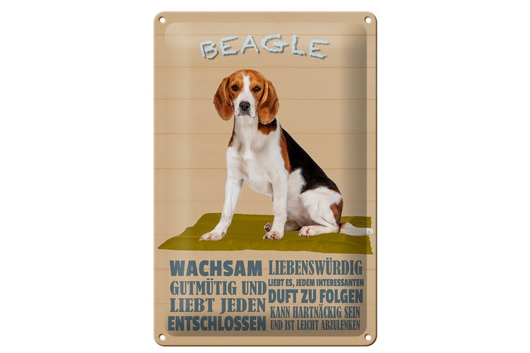 Blechschild Spruch 20x30cm Beagle Hund gutmütig liebt jeden