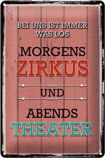 Blechschild Spruch 20x30cm bei uns morgens Zirkus Theater