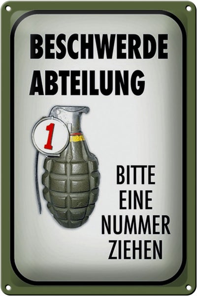 Blechschild Spruch 20x30cm Beschwerde Abteilung bitte Nr.
