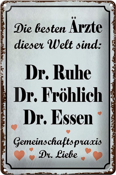 Blechschild Spruch 20x30cm beste Ärzte Dr. Ruhe Fröhlich