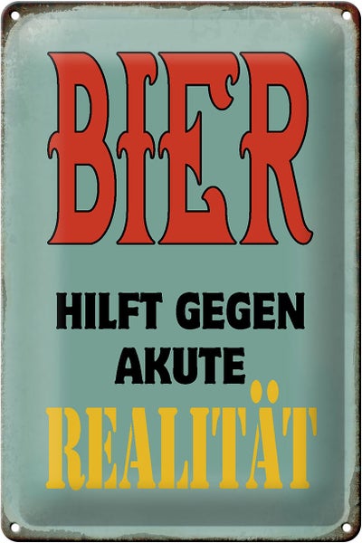 - TitelBlechschild Spruch 20x30cm Bier hilft gegen akute Realität [ORIGINAL BLECHSCHILD von FEMER]