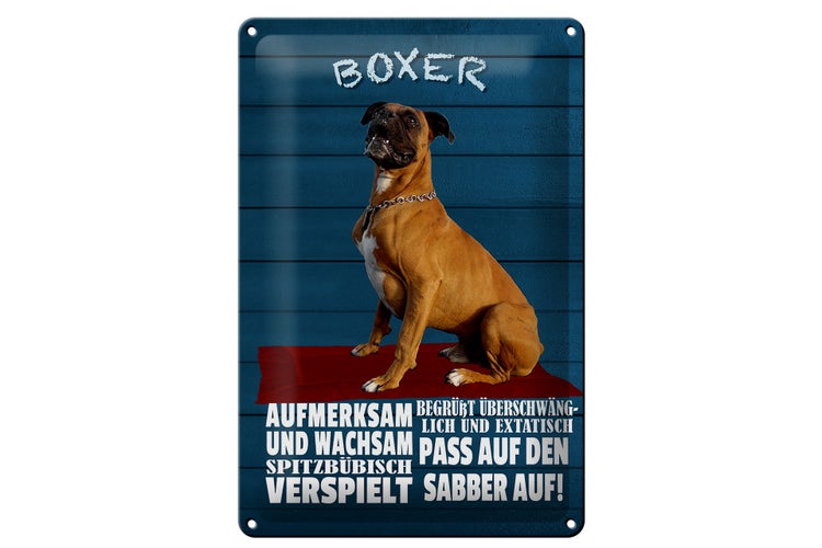- TitelBlechschild Spruch 20x30cm Boxer Hund aufmerksam wachsam [ORIGINAL BLECHSCHILD von FEMER]
